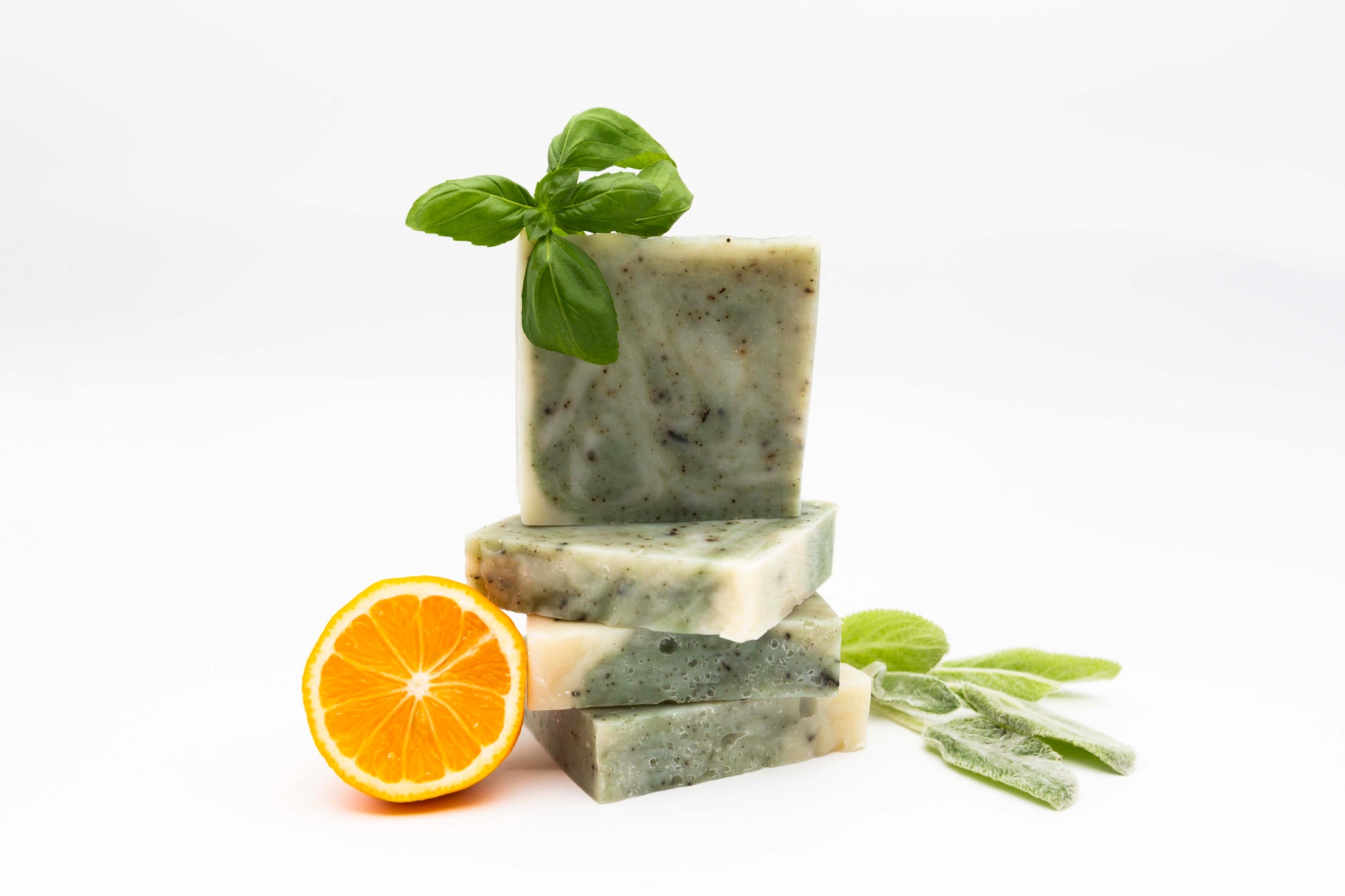 Ingredients: Coconut Oil, RSPO Sustainably Sourced Palm Oil, Olive Oil, Sodium Hydroxide (Lye), Water, Lemon Essential Oil, Sweet Basil Essential Oil, Spanish Sage Essential Oil, Organic Sage Leaf, Naturally Occurring Chromium Oxide Green.