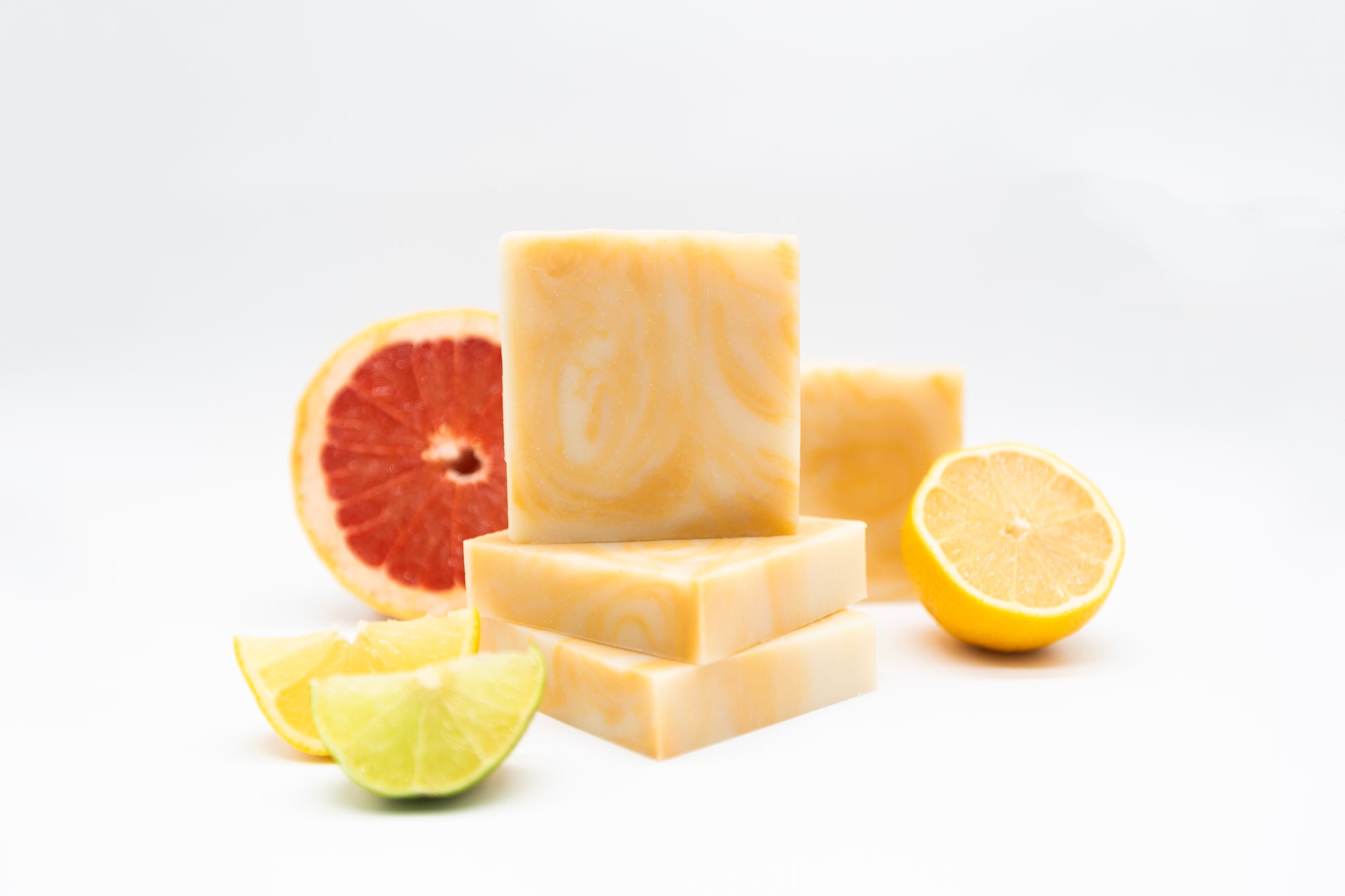 Ingredients: Coconut Oil, RSPO Sustainably Sourced Palm Oil, Olive Oil, Sodium Hydroxide (Lye), Water, Grapefruit Essential Oil, Bergamot Essential Oil, Petitgrain Essential Oil, Lemon Essential Oil, Naturally Occurring Iron Oxide Yellow.